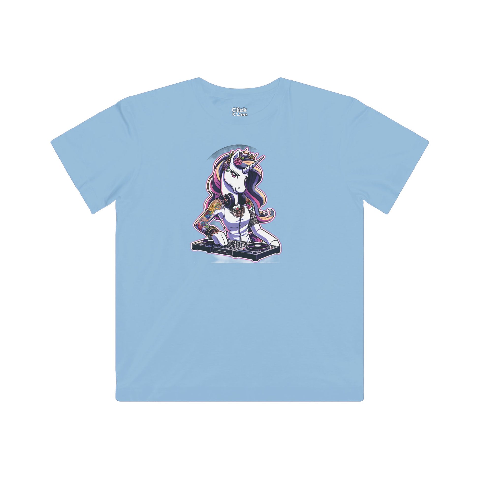 Kids Harem Anime T-Shirt - Tattooed Unicorn DJing - Harem Anime Style T-Shirt