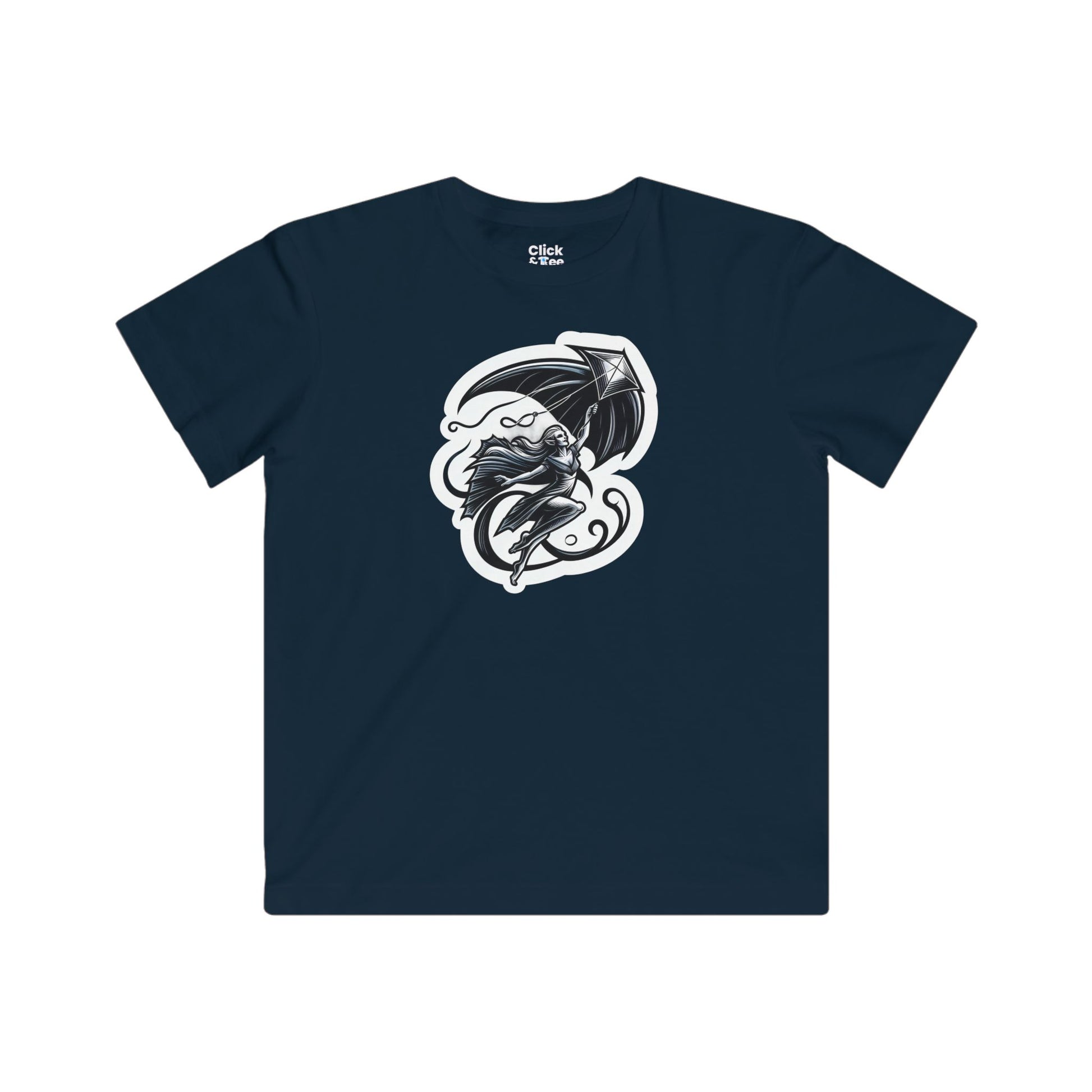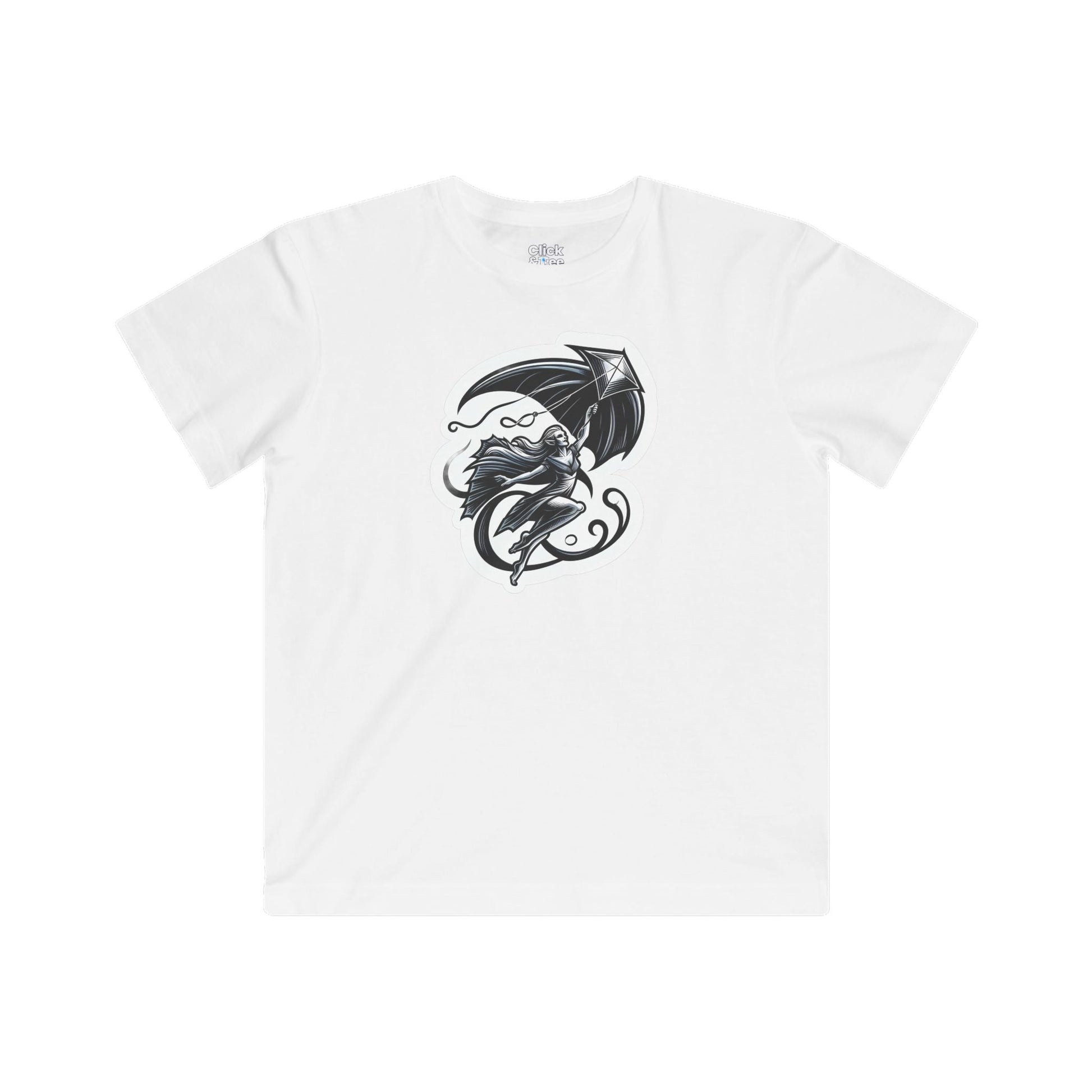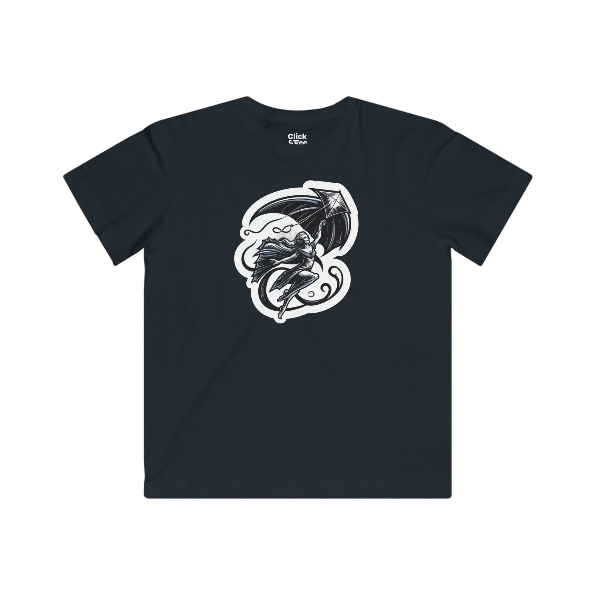 Kids Modern T-Shirt - Graceful Vampire Flying a Kite - Modern Style T-Shirt