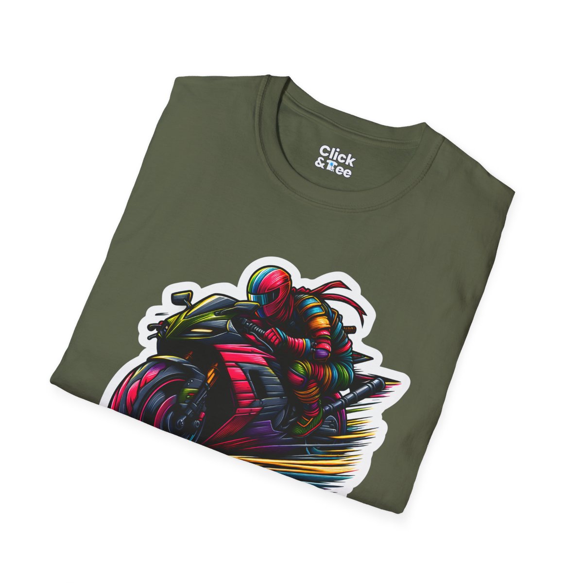 This Ninja T-Shirt features an armored warrior racing on a motorcycle, captured in a stunning realistic-style. It's a unique T-Shirt perfect for enthusiasts and makes an excellent T-Shirt gift. Explore the detail and energy this realistic T-Shirt brings to your wardrobe.
